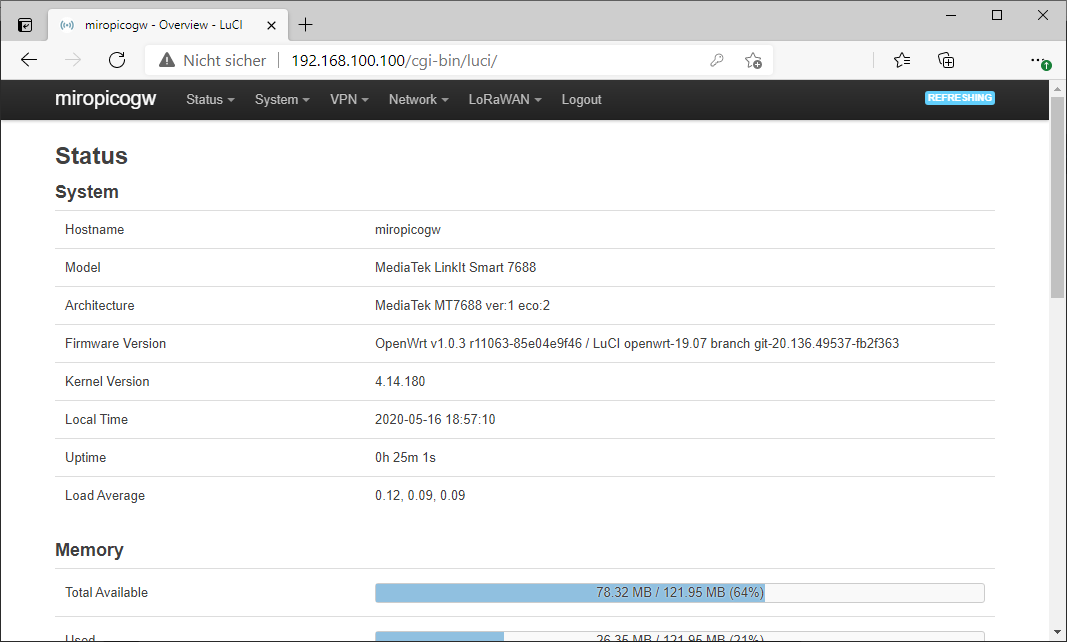 The miro Edge gateway configuration is done through a web interface. After successful login, the main configuration page of the gateway will be shown.