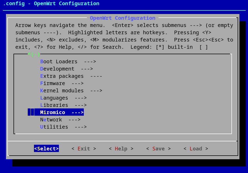 A subset of the miro Edge's packet forwarder binaries and configuration files is available in the package pfwbin. To include it in your build, select it in the menuconfig under Miromico -> pfwbin.