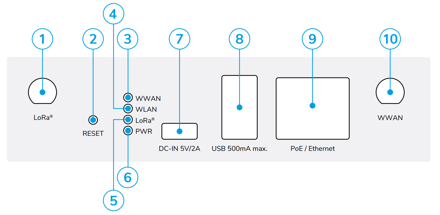 - LED LoRa: Information about the connection from LoRa to the Internet