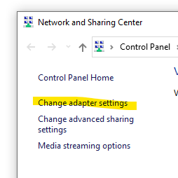 In Network and Sharing Center select Change adapter settings