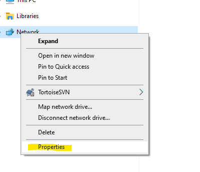 In Windows 10 right-click on Network in explorer and select properties