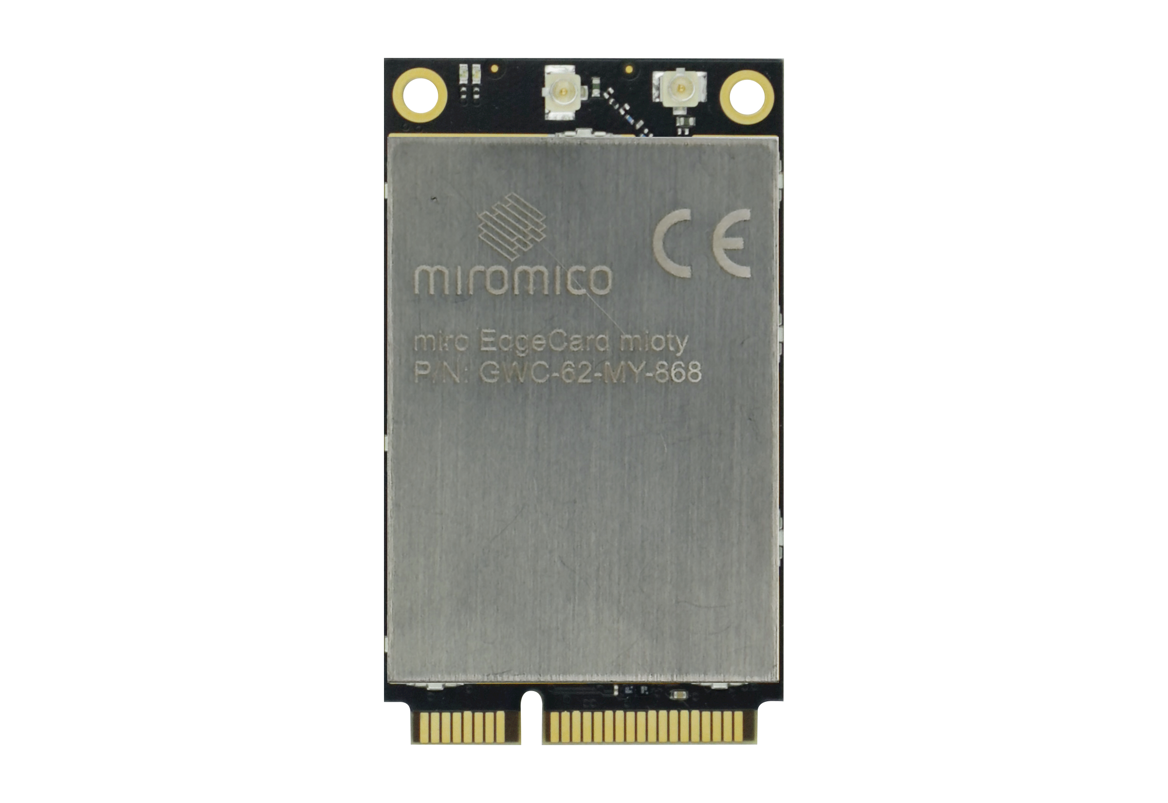 The miro EdgeCard mioty is a Mini PCIe mioty-Gateway Card providing a plug-and-play solution for long-range and low-power wireless communication networks based on the mioty standard. The Mini PCIe form factor card uses a USB 2.0 serial link (CDC) to communicate with a host processor.
